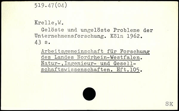 Gelöste und ungelöste Probleme der Unternehmensforschung.