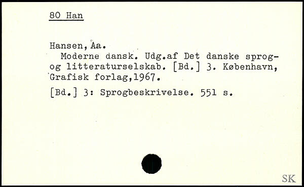 Moderne dansk. Udg.af Det danske sprog-og litteraturselskab. [Bd.] 3. København, Grafisk forlag,19&7. [Bd.] 3: Sprogbeskrivelse.