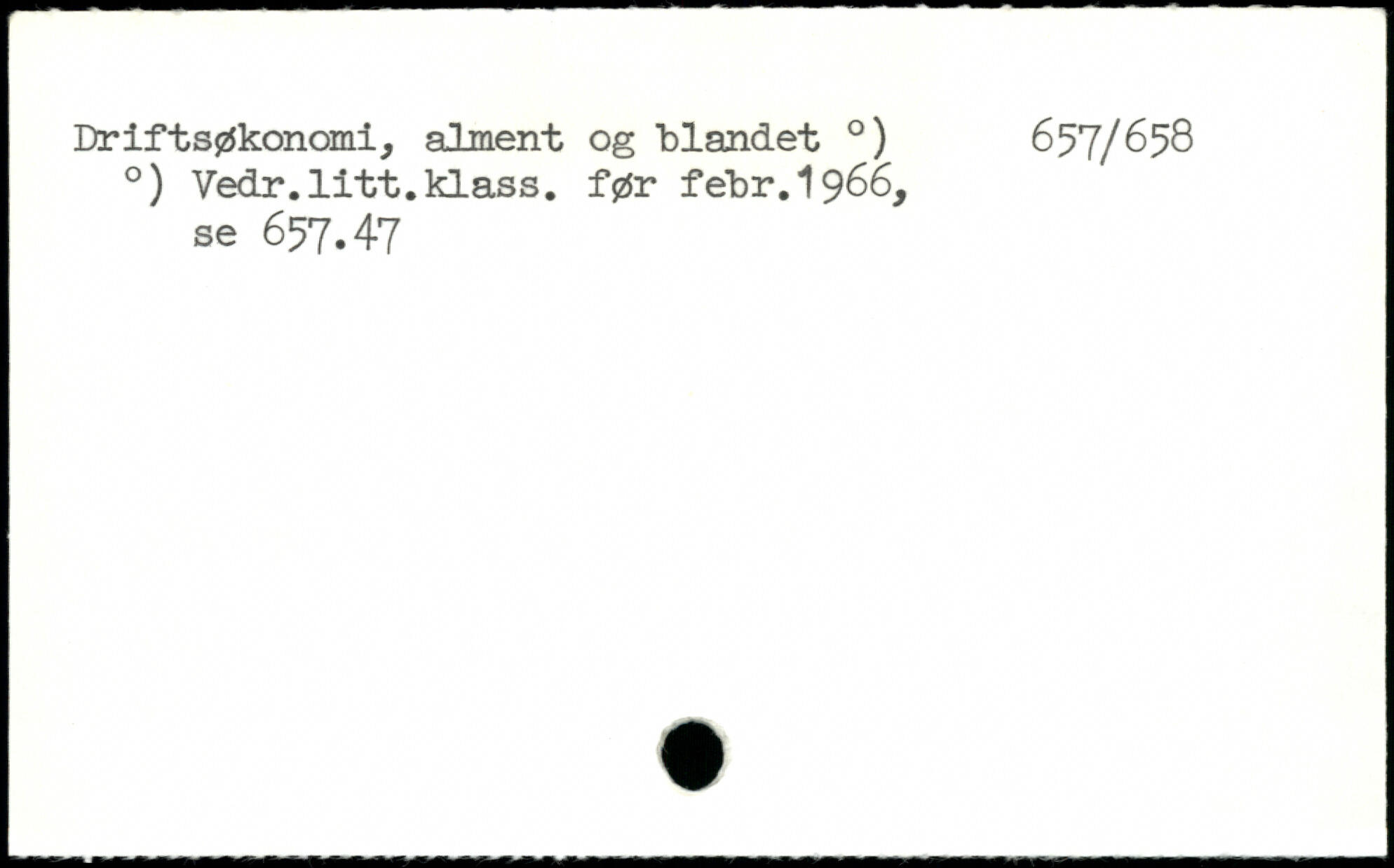 Driftsøkonomi, alment og blandet .) 657/658 .) Vedr.litt.klass. før febr.1966, se 657.47