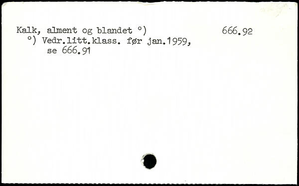 Kalk, alment og blandet .) 666.92 .) Vedr.lltt.klass. før jan.1959, se 666.91