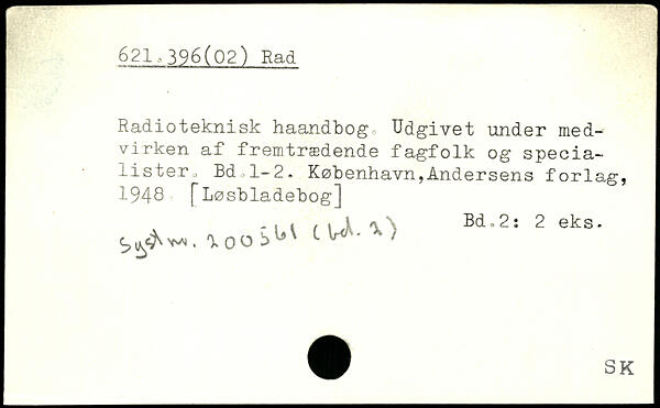 Radioteknisk haandbog, Udgivet under medvirken af fremtrædende fagfolk og specialister , Bd 1-2.