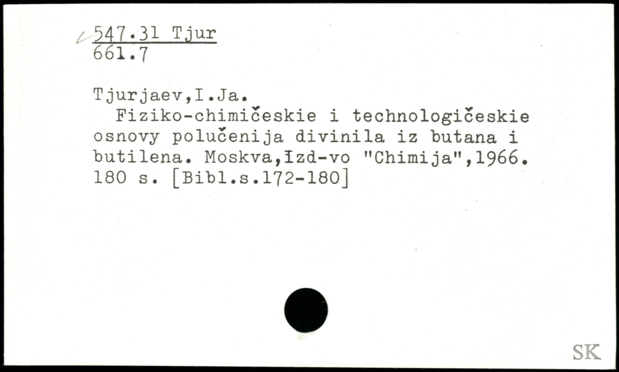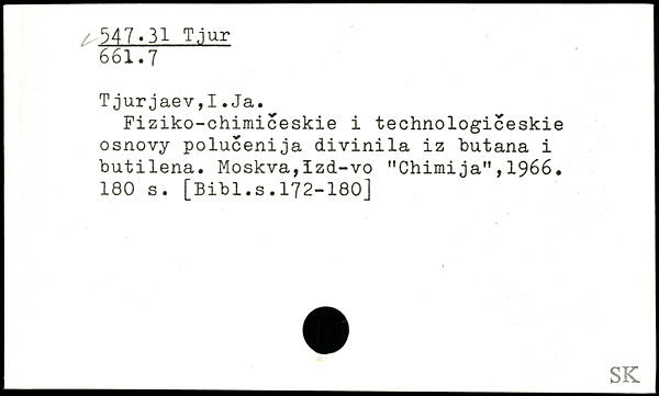 Tjurjaev,I.Ja. Fiziko-chimiceskie i technologiceskie osnovy polucenija divinila iz butana i butilena. Moskva,Izd-vo "Chimija",1966.