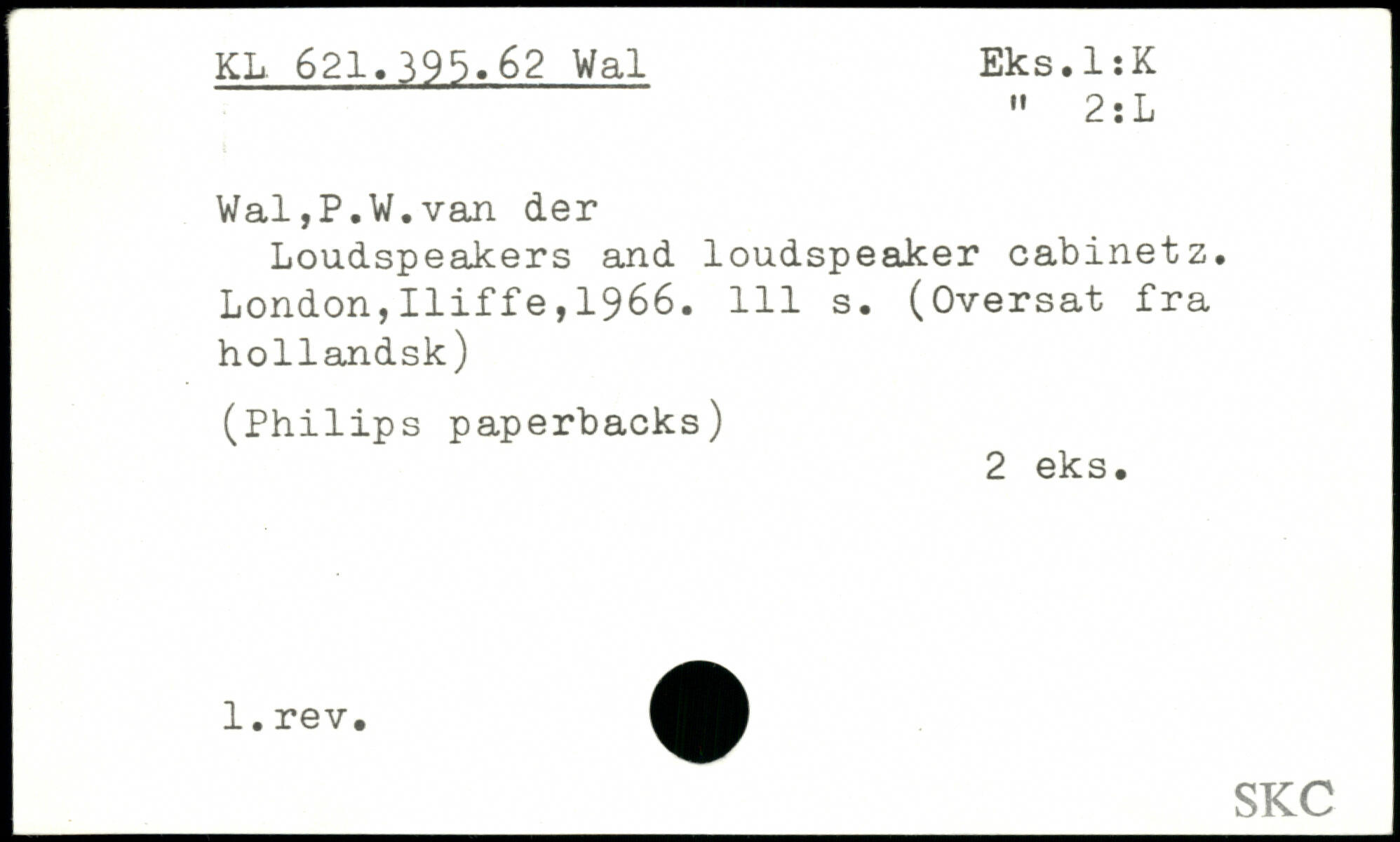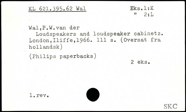 Wal,P.V/.van der Loudspeakers and loudspeaker cabinetz.