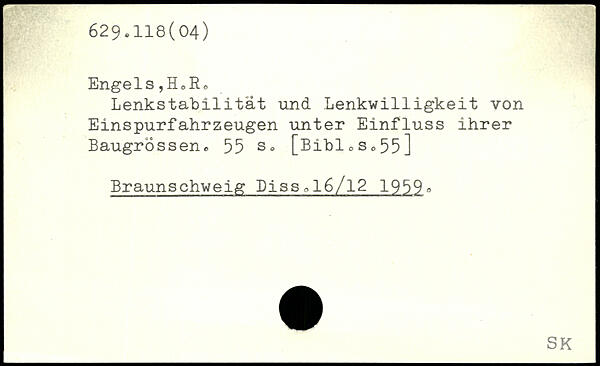 Lenkstabilitat und. Lenkw1111gkeit von Einspurfahrzeugen unter Einfluss ihrer Baugrossen.