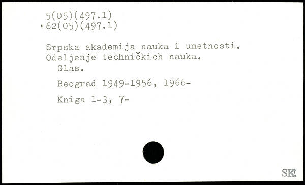 Srpska akademija nauka i umetnosti. Odeljenje technickich nauka. Glas.