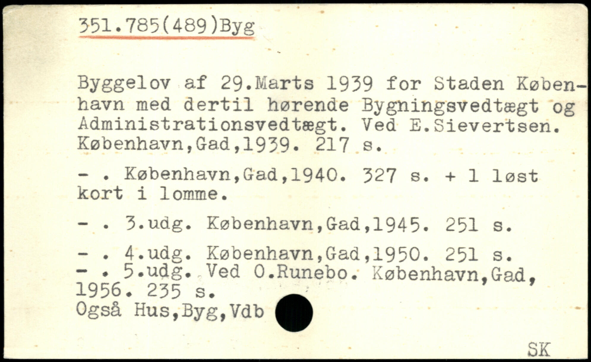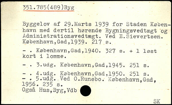 Byggelov af 29.Marts 1939 for Staden København med dertil hørende Bygningsvedtægt og Administrationsvedtægt. Ved E.Sievertsen.