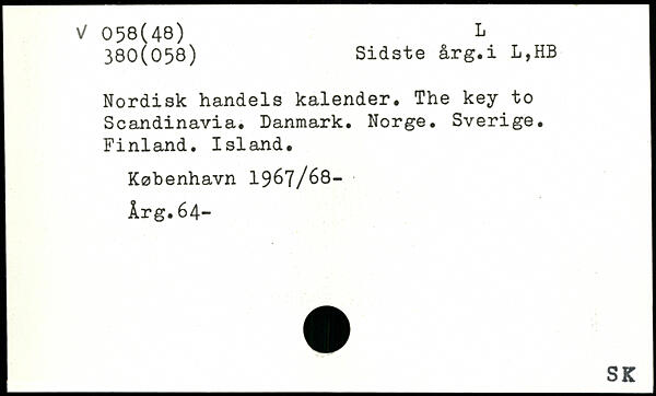 Nordisk handels kalender. The key to Scandinavia. Danmark. Norge. Sverige. Finland. Island.