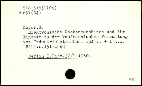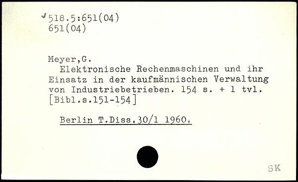Elektronische Rechenmaschinen und ihr Einsatz in der kaufmännischen Verwaltung von Industriebetrieben.