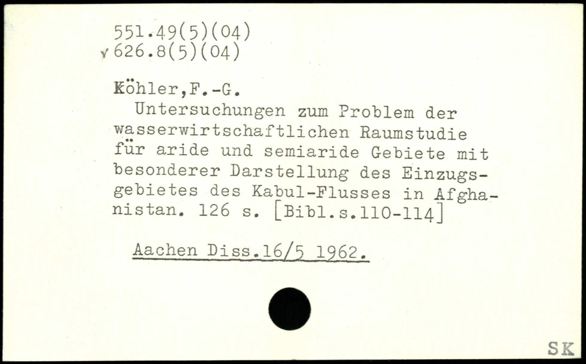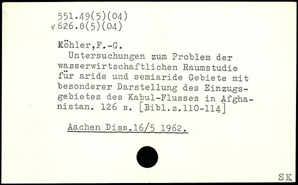 Untersuchungen zum Problem der wasserwirtschaftlichen Raumstudie für aride und semiaride Gebiete mit besonderer Darstellung des Einzugsgebietes des Kabul-Flusses in Afghanistan.
