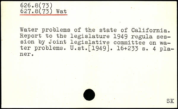 Water problems of the state of California. Report to the legislature 1949 regula session by Joint legislative committee on water problems. U.at.[1949].