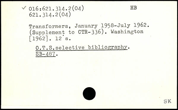 Transformers, January 1958-July 1962. (Supplement to CTR-336). Washington