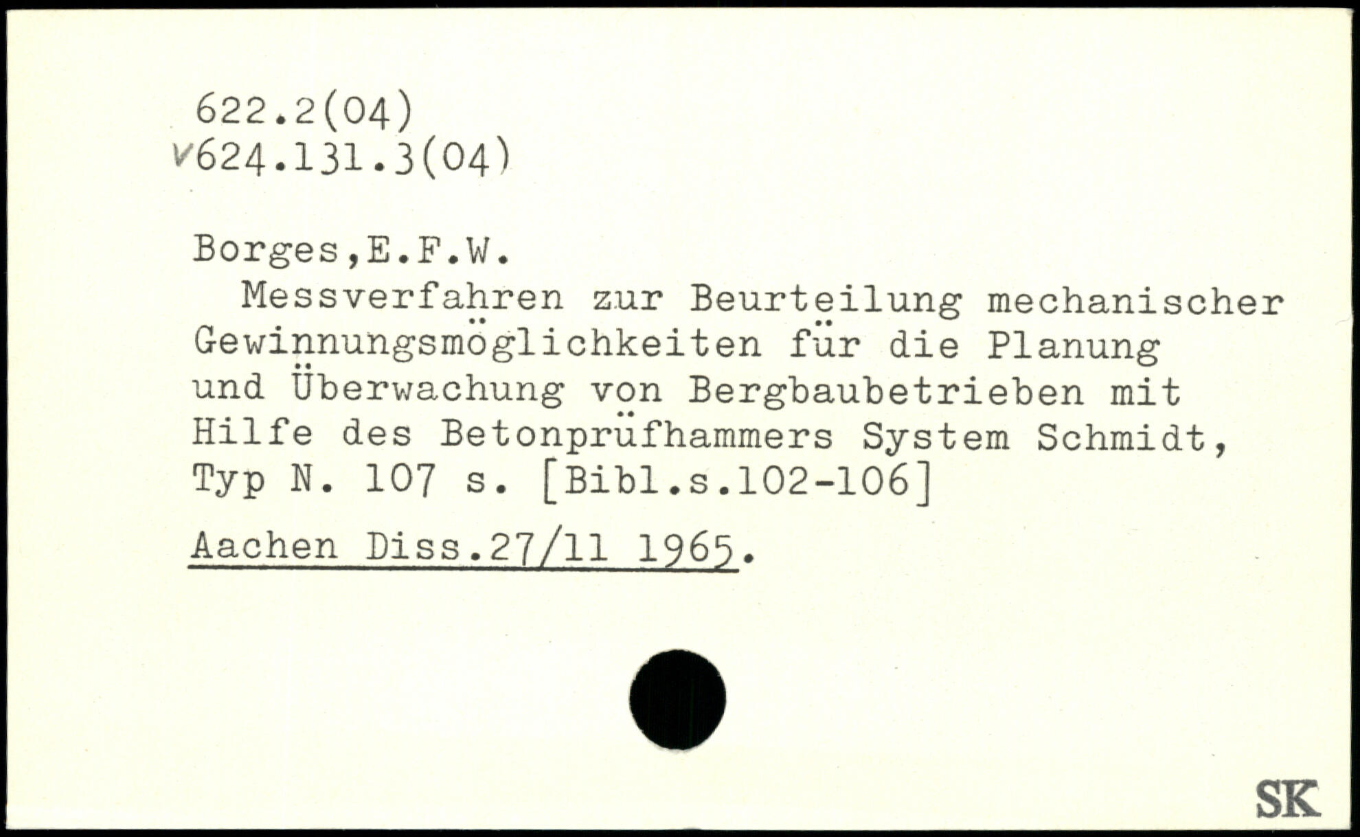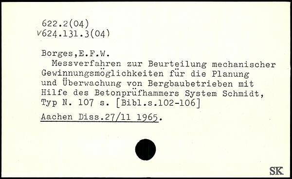 Messverfahren zur Beurteilung mechanischer Gewinnungsmöglichkeiten für die Planung und Überwachung von Bergbaubetrieben mit Hilfe des Betonprufhammers System Schmidt, Typ N.