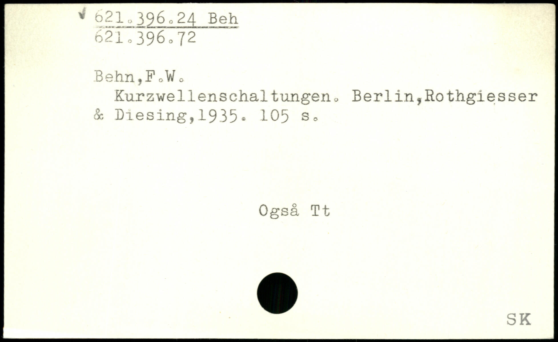 Kurzwellenschaltungeno Berlin,Rothgiesser & Biesing,1935, 105 s, Også Tt