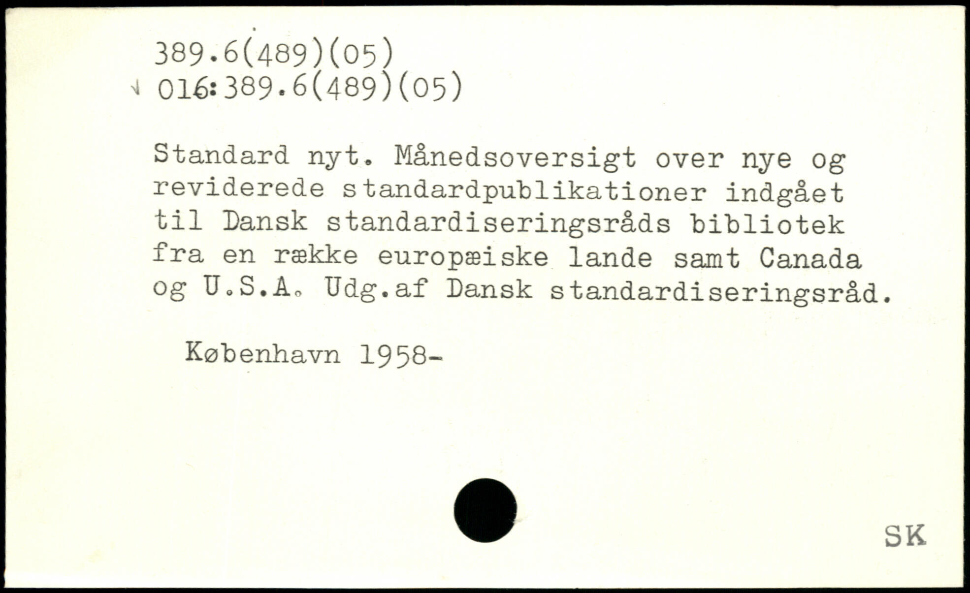 Standard nyt. Månedsoversigt over nye og reviderede standardpublikationer indgået til Dansk Standardiseringsråds bibliotek fra en række europæiske lande samt Canada og U.S.Ao Udg.af Dansk Standardiseringsråd.