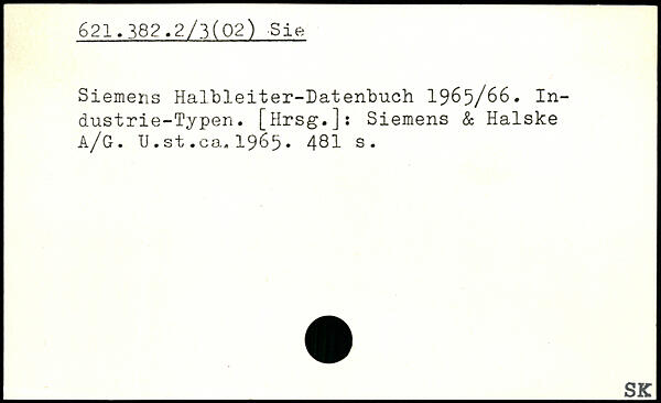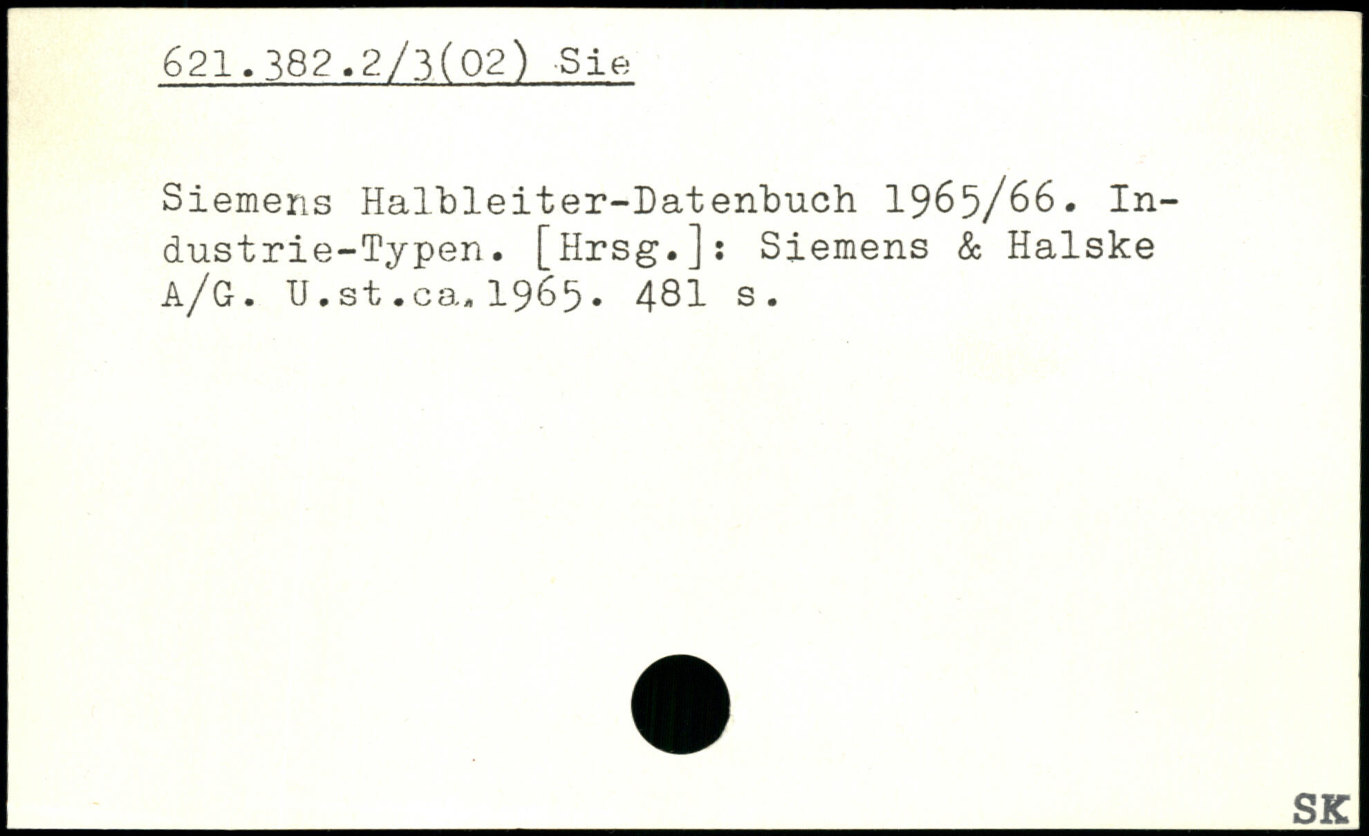 Siemens Halbleiter-Datenbuch 1965/66. Industrie-Typen. [Hrsg.]: Siemens & Halske A/G. U.st,ca,1965.