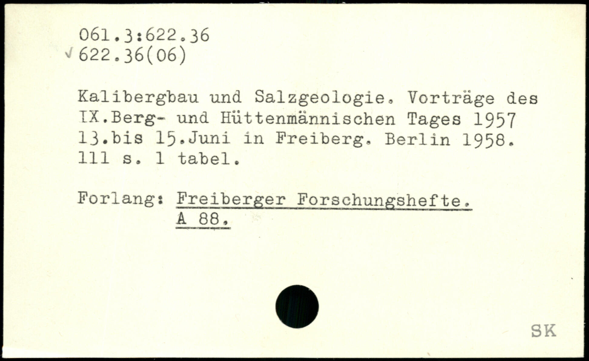 Kalibergbau und Salzgeologiea Vorträge des IX.Berg- und Hüttenmännischen Tages 1957 13.his 15.Juni in Freiberg