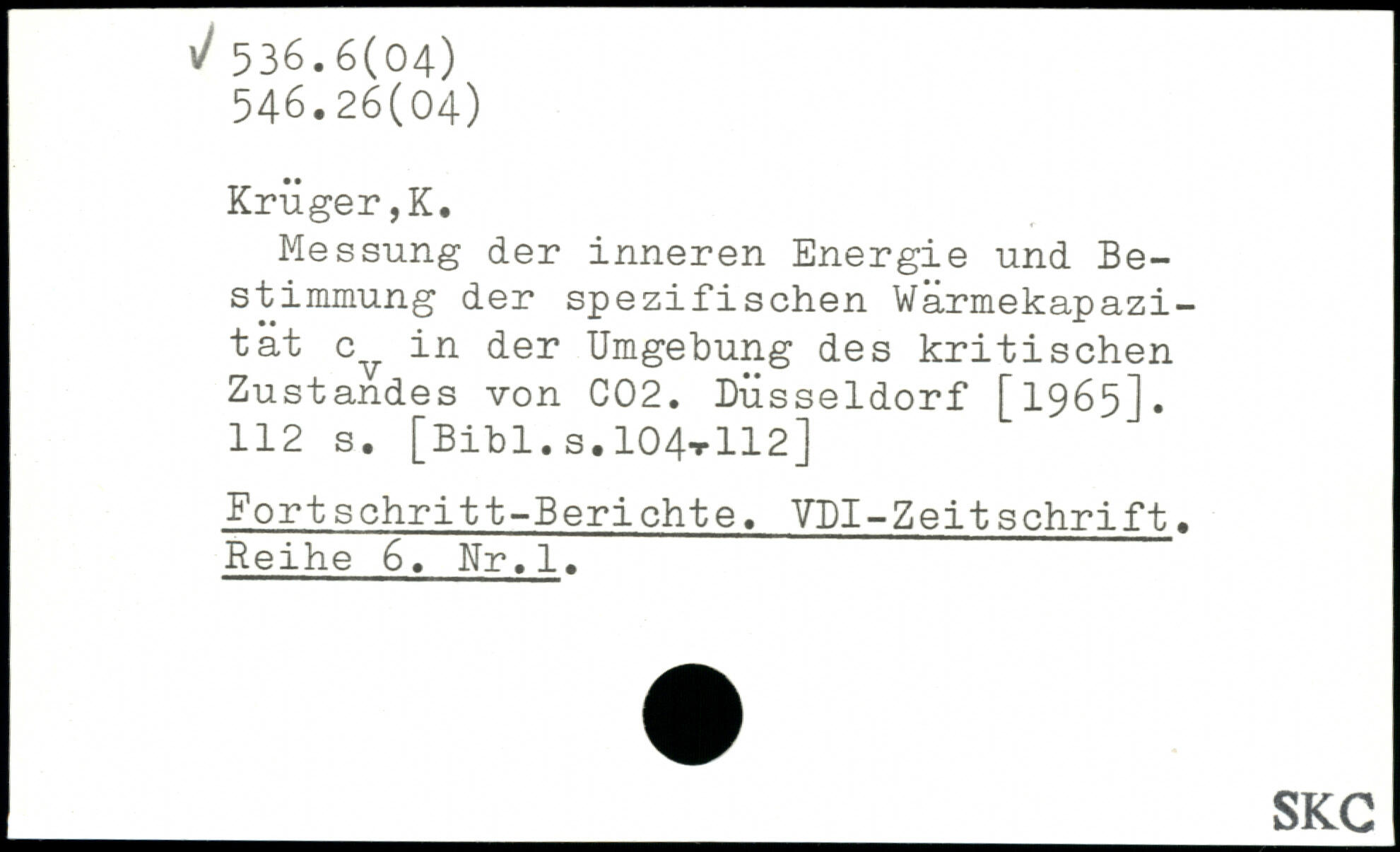 Messung der inneren Energie und Bestimmung der spezifischen Wärmekapazität in der Umgehung des kritischen Zustandes von C02. Düsseldorf [1965].