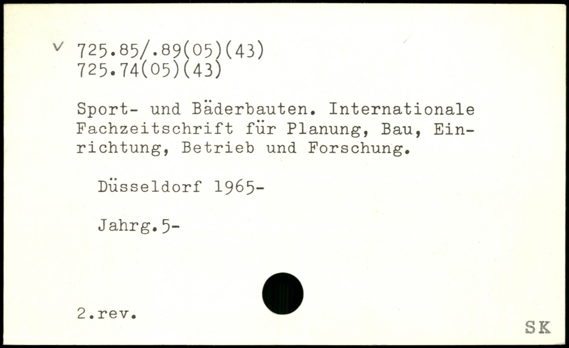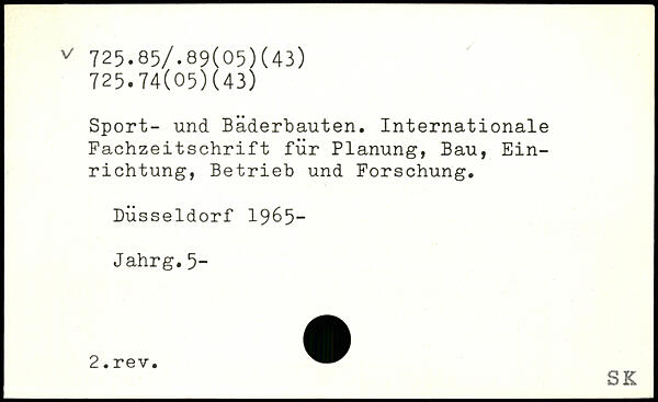 Sport- und Bäderbauten. Internationale Fachzeitschrift für Planung, Bau, Einrichtung, Betrieb und Forschung. Düsseldorf 1965- Jahrg.5-