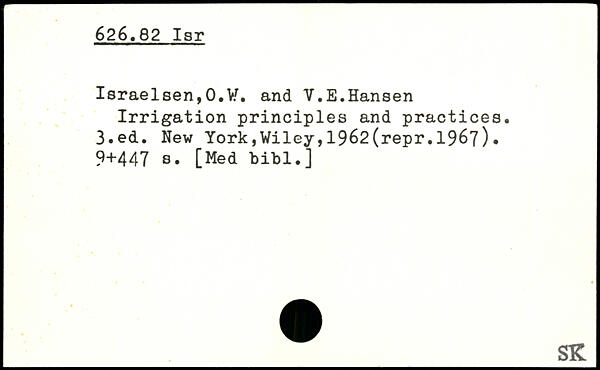 lsraelsen,0.V, and V.E.Hansen Irrigation principles and practices.