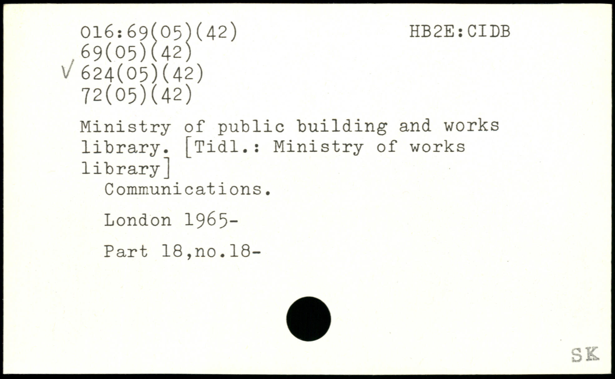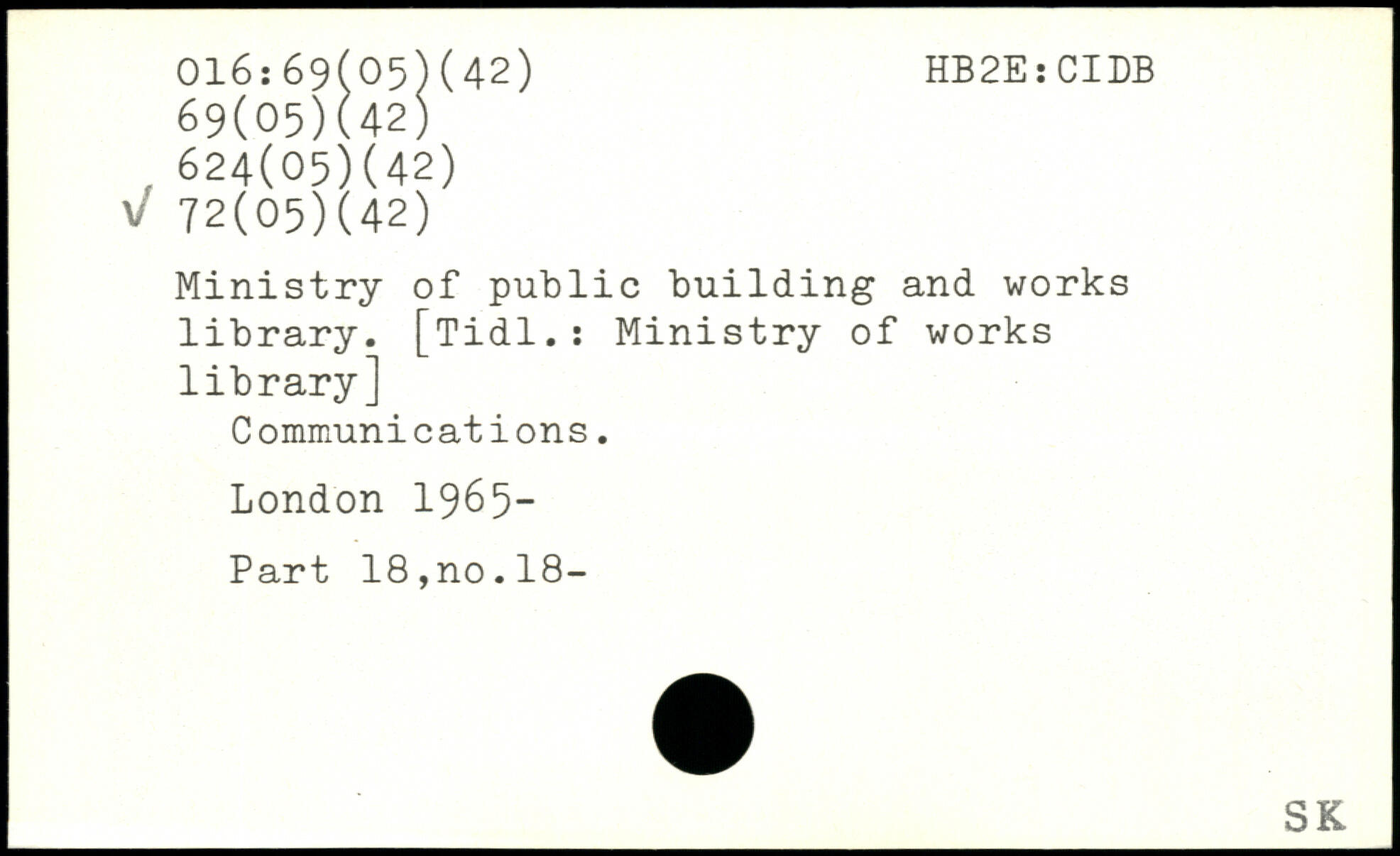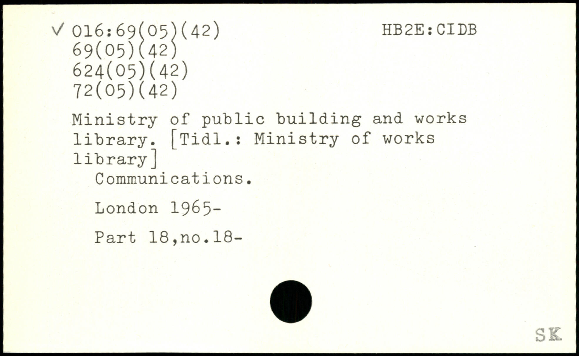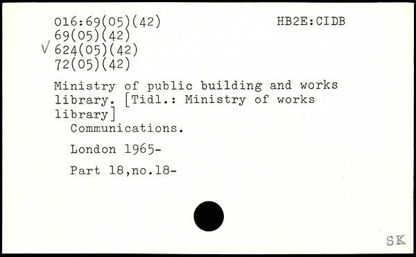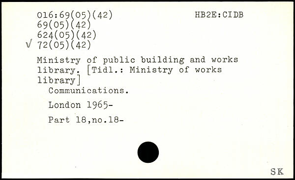 Ministry of public building and works library. [Tidl.: Ministry of works library] Communications.
