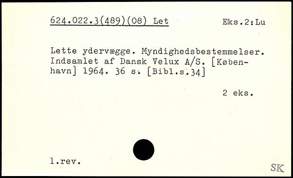 Lette ydervægge. Myndighedsbestemmelser. Indsamlet af Dansk Velux A/S.
