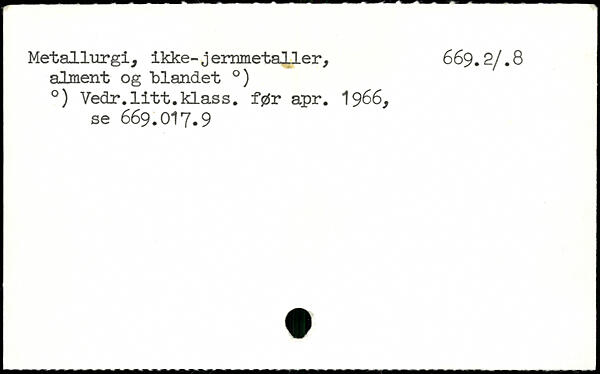 Metallurgi, ikke- j ernmetaller, 669.2/. 8 alment og blandet .) .) Vedr.litt.klass. før apr. 1966, se 669.OI7.9
