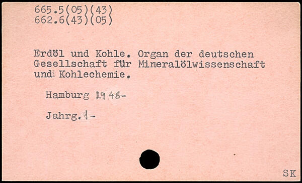 Erdöl und Kohle. Organ der deutschen Gesellschaft für Mineralölwissenschaft und Kohlechemie. Hamburg Jahrg.\~