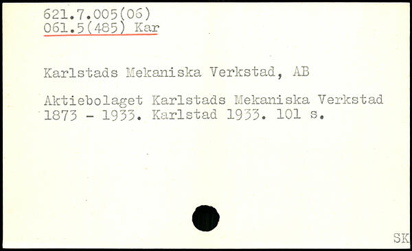 Karlstads Mekaniska Verkstad, AB Aktiebolaget Karlstads Mekaniska Verkstad 1873 - 1933. Karlstad 1933.