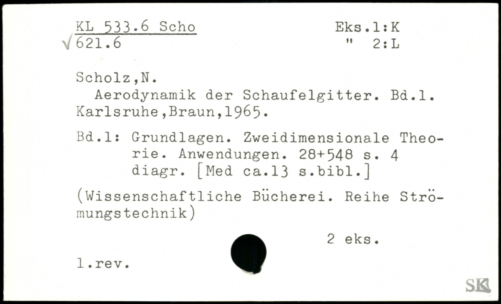 Aerodynamik der Schaufelgitter. Bd.l.
