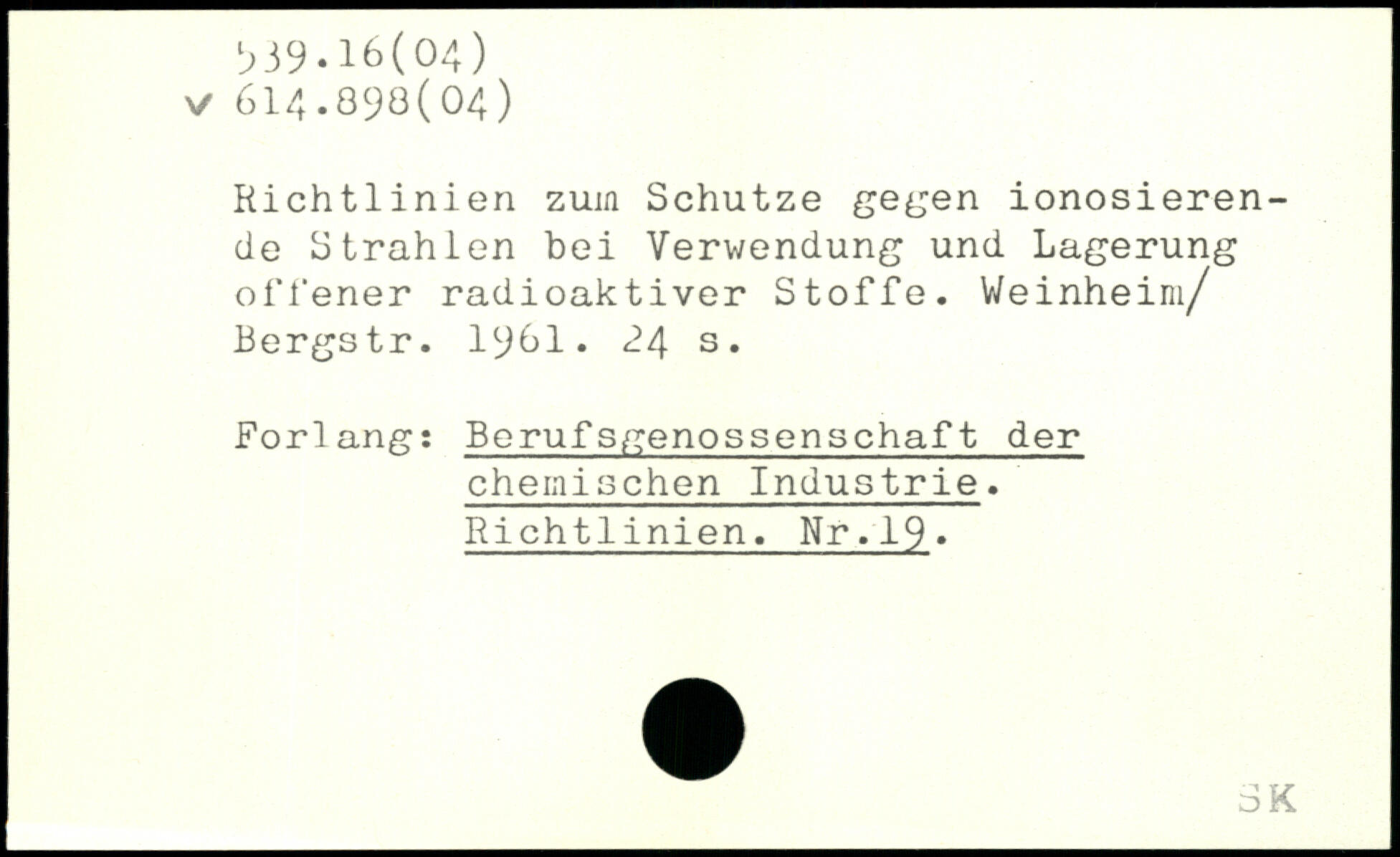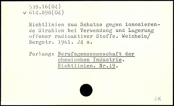 Richtlinien zum Schutze gegen ionosieren-cle Strahlen bei Verwendung und Lagerung offener radioaktiver Stoffe. Weinheim/ Bergstr. 1^61.
