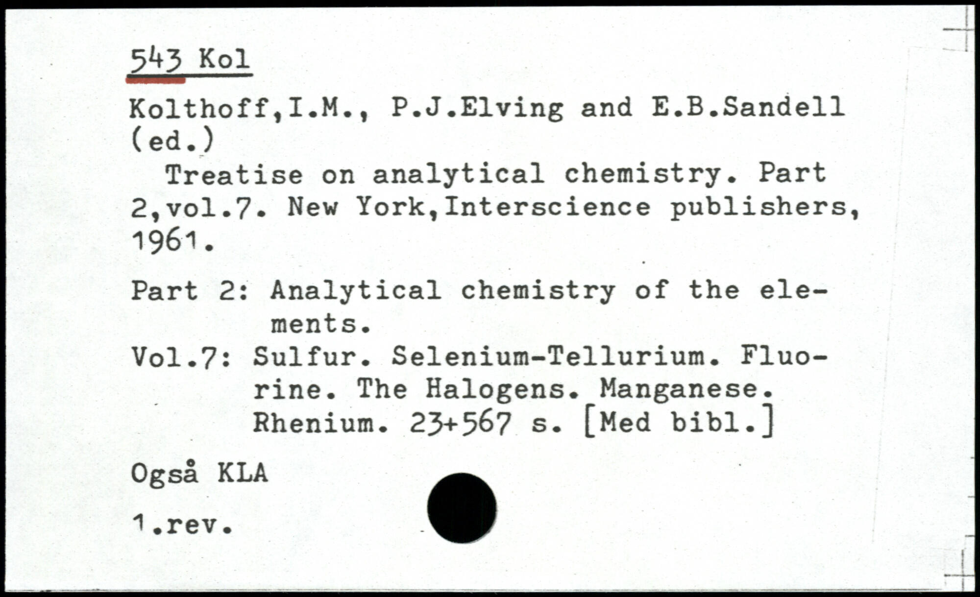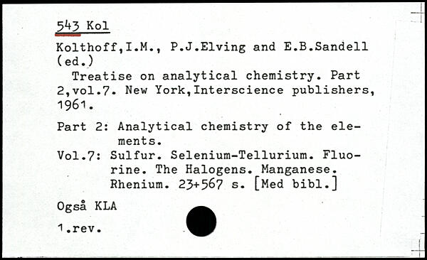 Forfatter: I.M. Kolthoff, P.J. Elving, E.B. Sandell