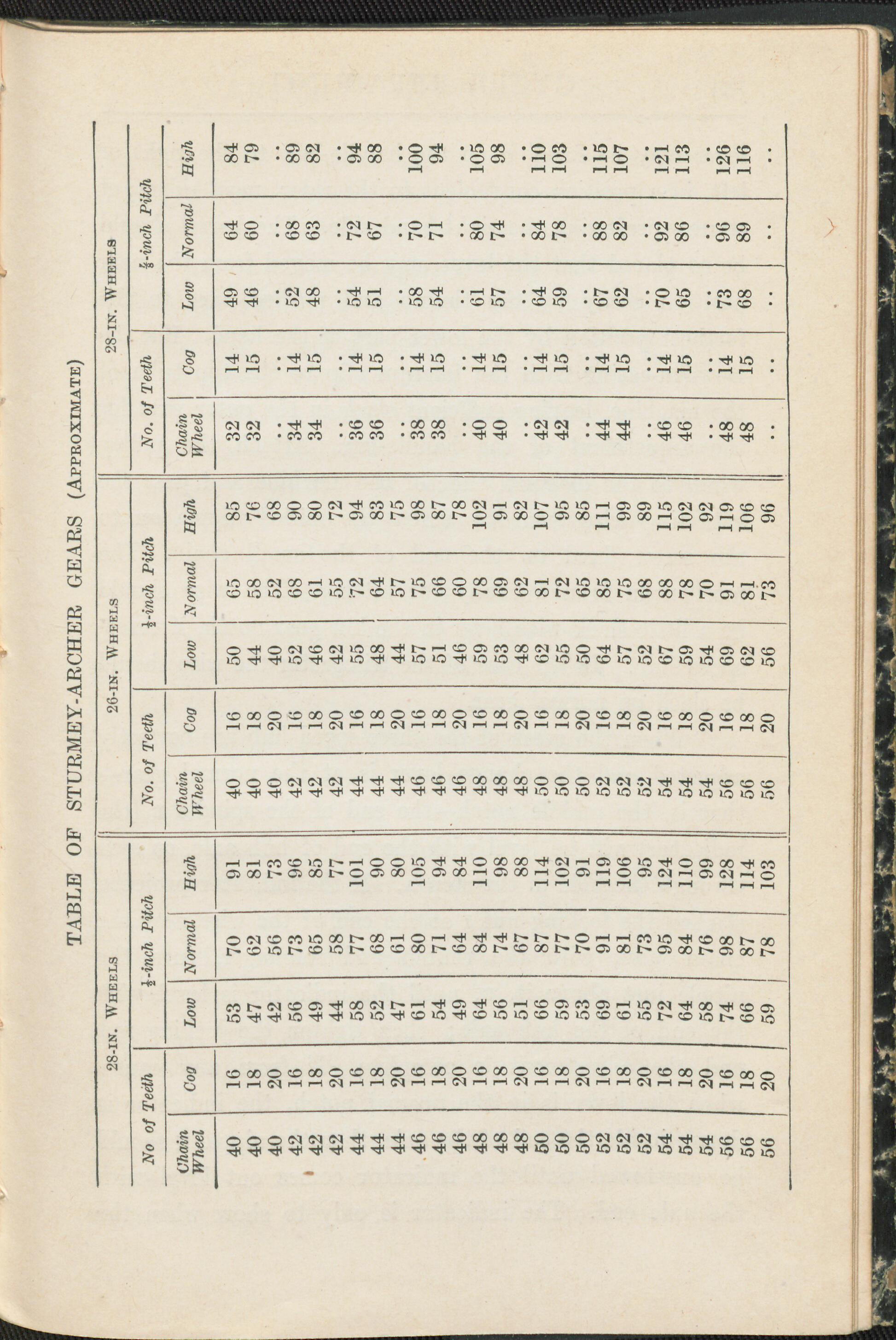 TABLE OF STURMEY-ARCHER GEARS (Approximate)