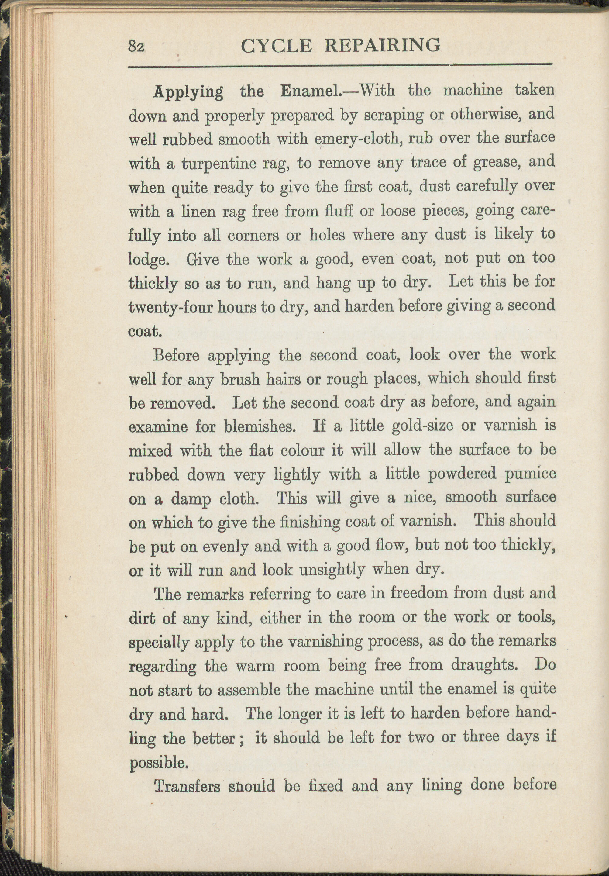 rubbed down very lightly with a little powdered pumice