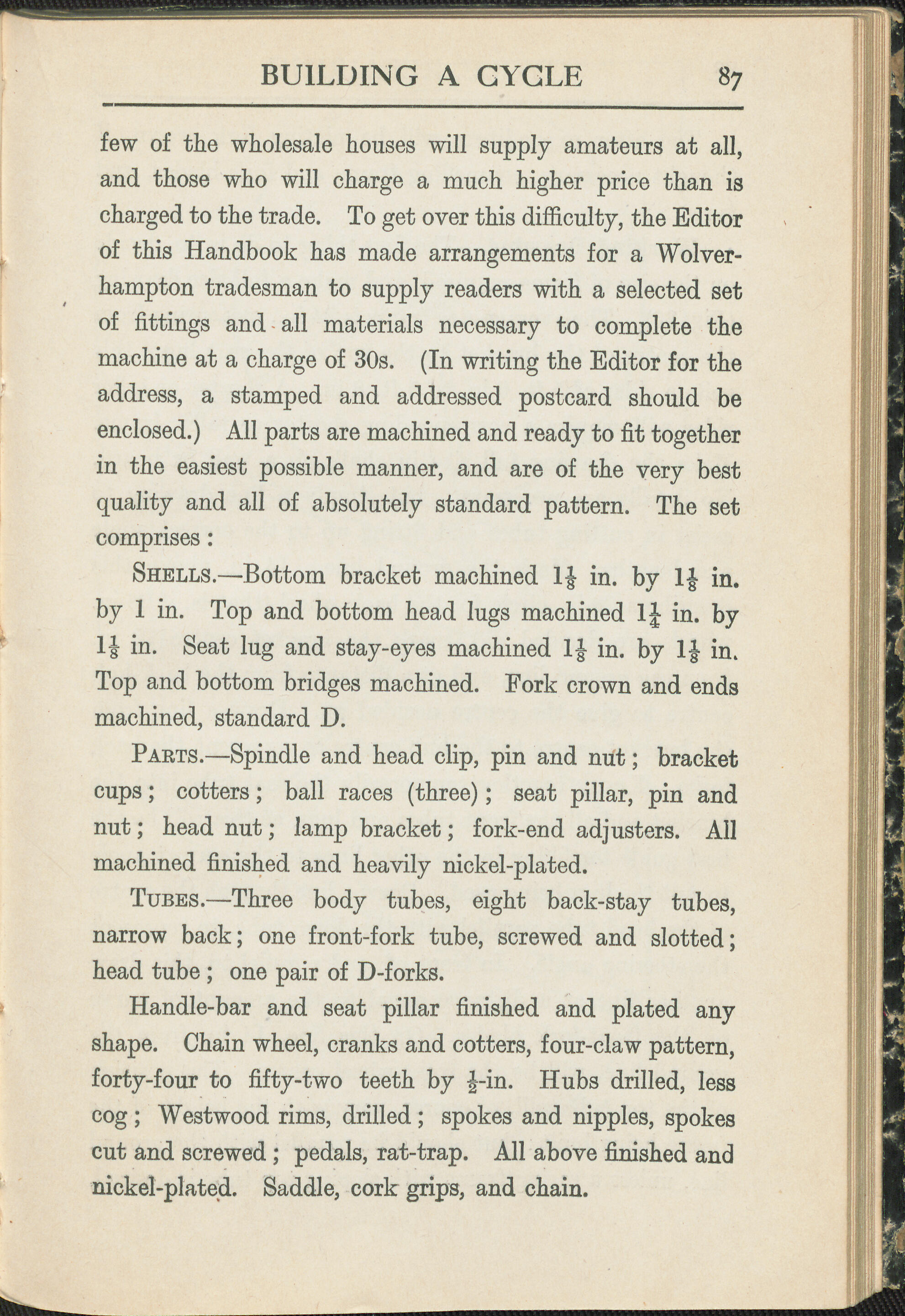 cut and screwed ; pedals, rat-trap. All above finished and