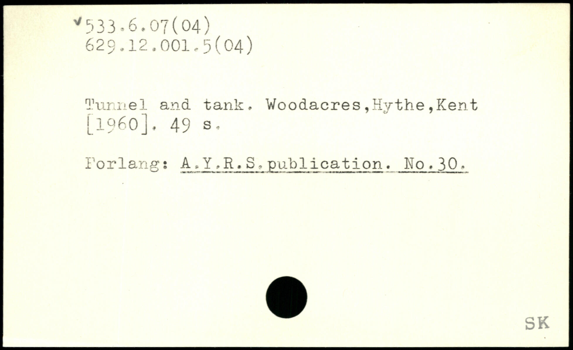 Tunnel and tank. Voodacres,Hythe,Kent [1960].