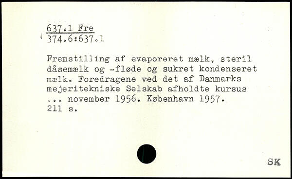 Fremst1111ng af evaporeret mælk, steril dåsemælk og -fløde og sukret kondenseret mælk. Foredragene ved det af Danmarks mejeritekniske Selskab afholdte kursus ,.o november 1956.
