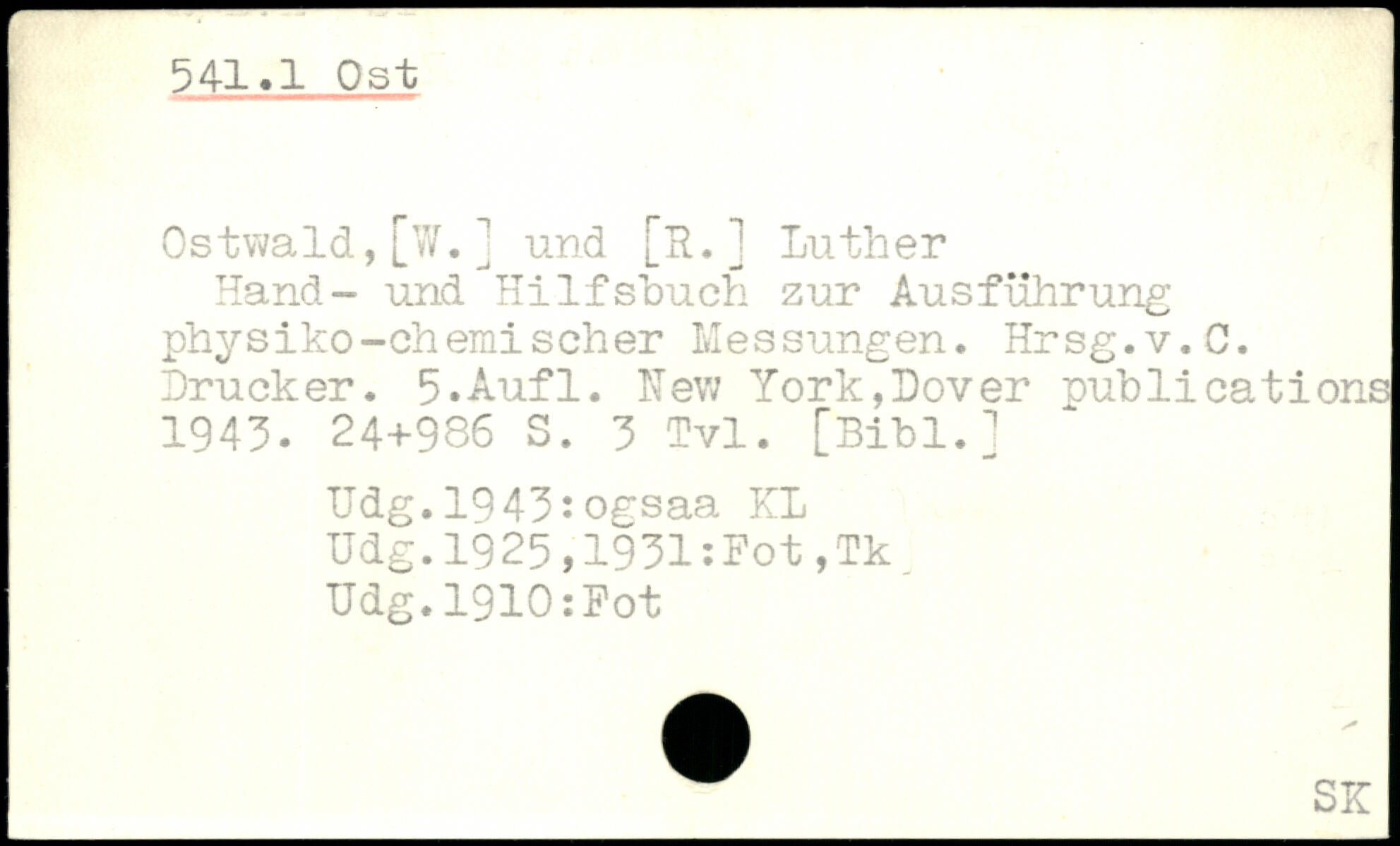 Ostwald, [W. ] und [R. ] Luther Hand- und Hilfsbuch zur Ausführung physiko-chemischer Messungen. Hrsg.v.O. Drucker.