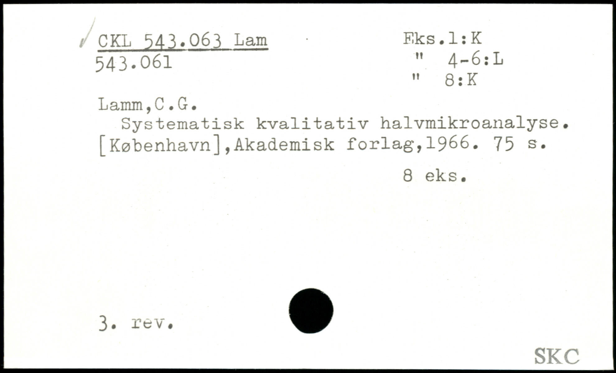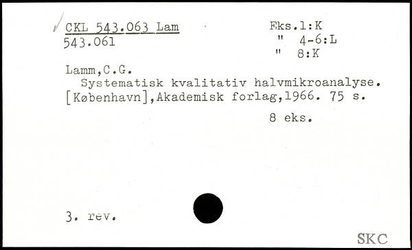 Systematisk kvalitativ halvmikroanalyse. [København],Akademisk forlag,1966.