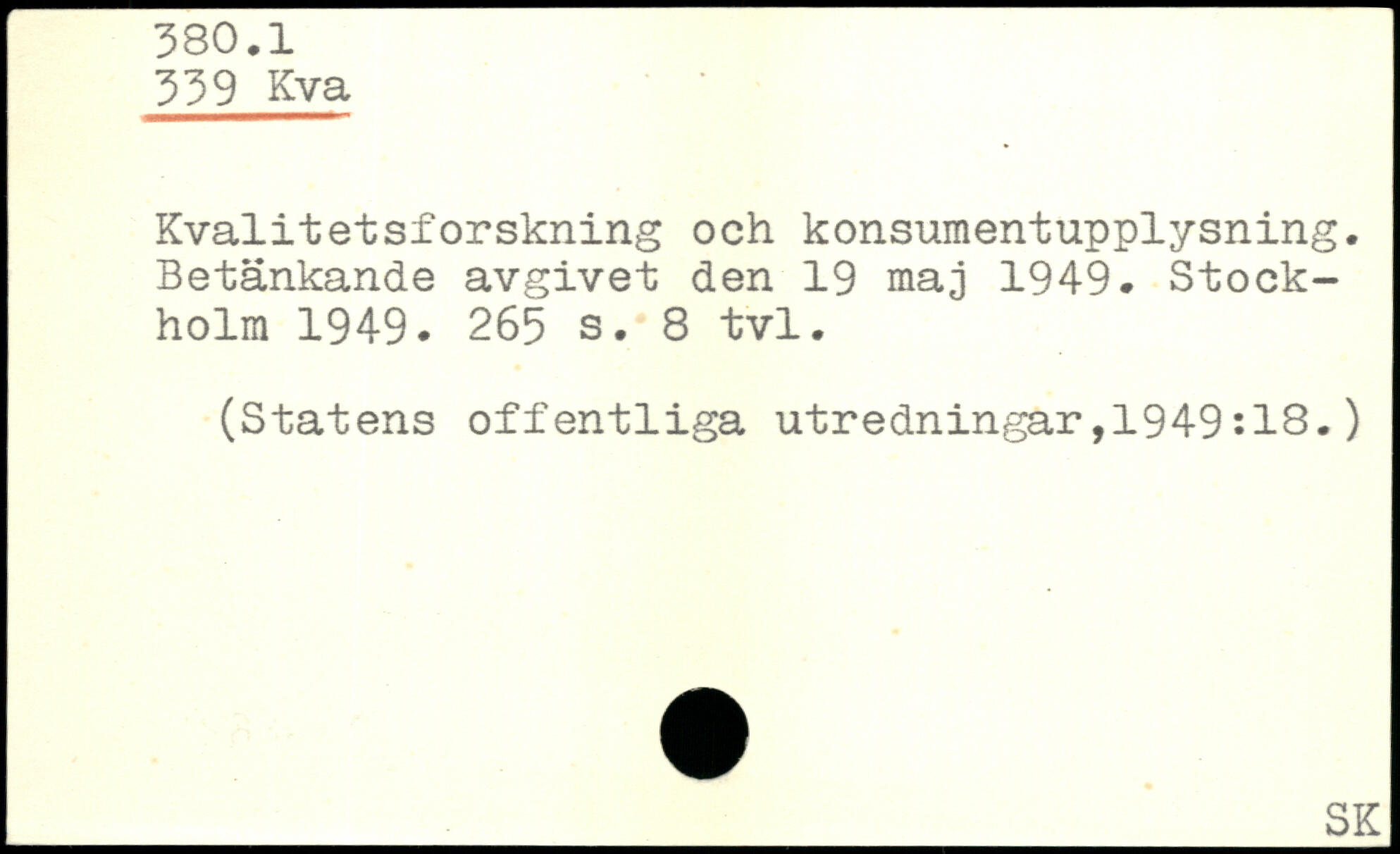 Kvalitetsforskning och konsumentupplysning. Betänkande avgivet den 19 maj 1949-