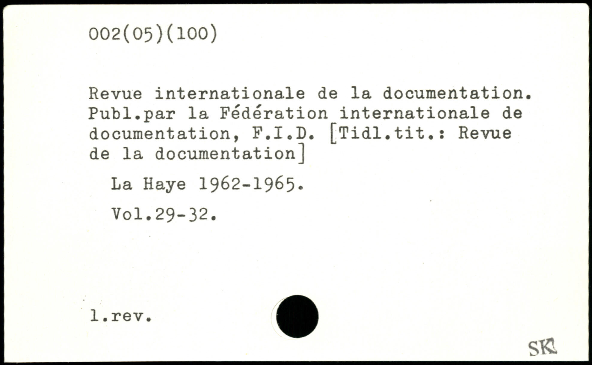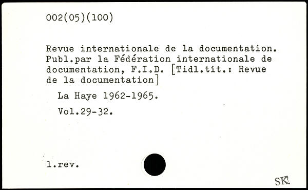 Revue internationale de la documentation. Publ.par la Fédération internationale de documentation, F.I.D. [Tidl.tit.i Revue de la documentation]