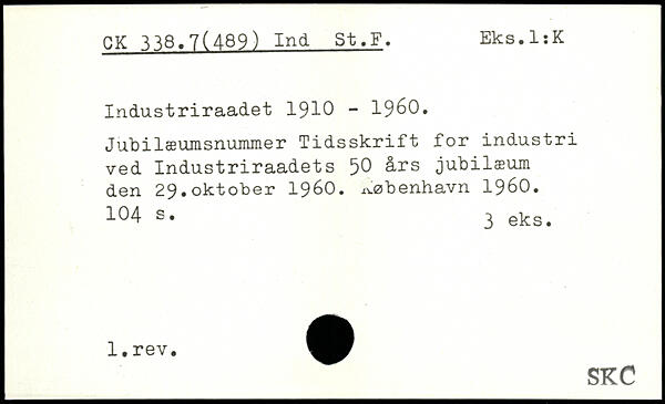 Jubilæumsnummer Tidsskrift for industri ved Industriraadets 50 års jubilæum den 29.oktober 1960.