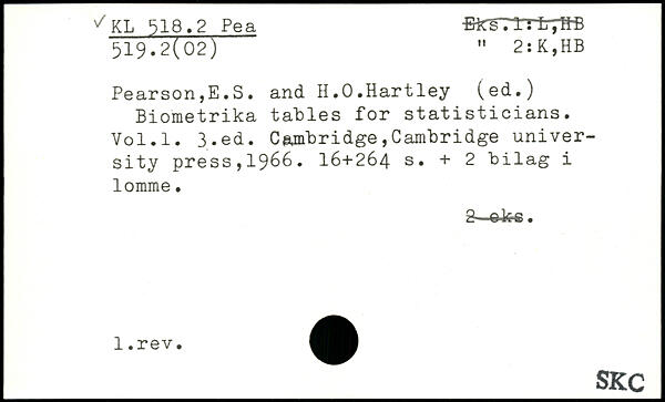 Biometrika tables for statisticians.