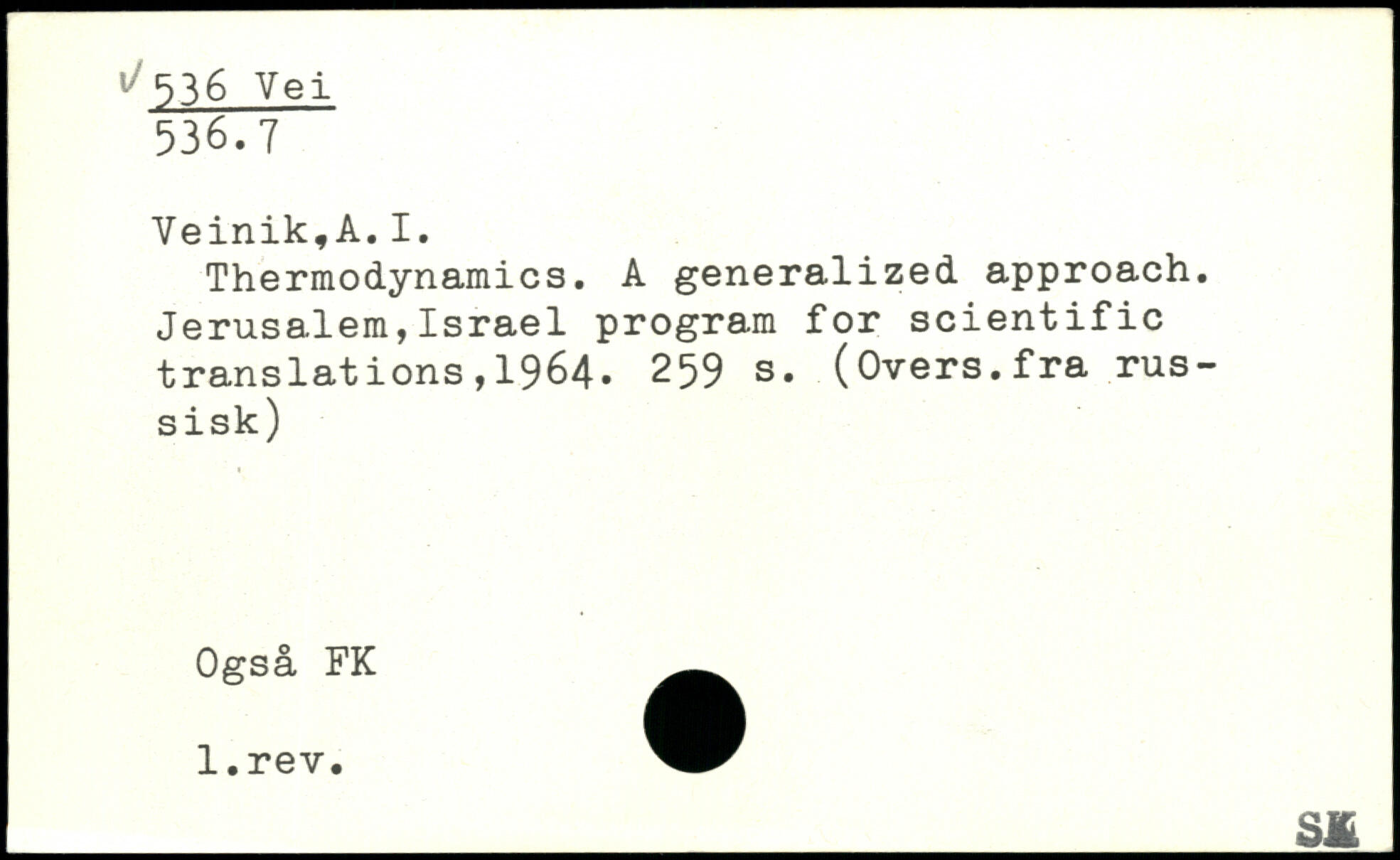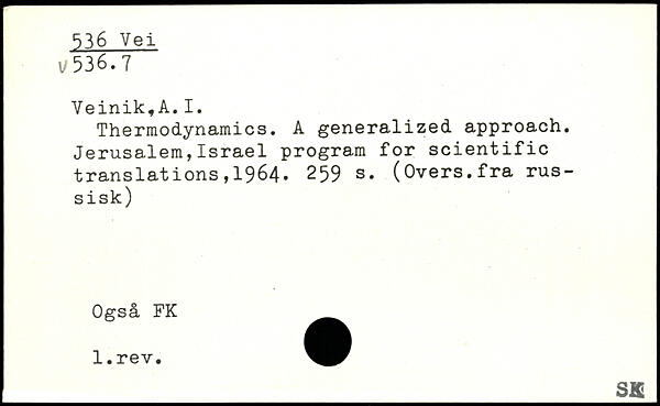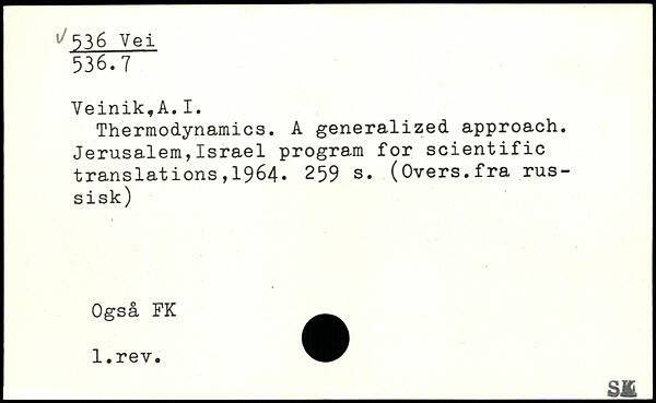 Thermodynamics. A generalized approach. Jerusalem,Israel program for scientific translations,1964.