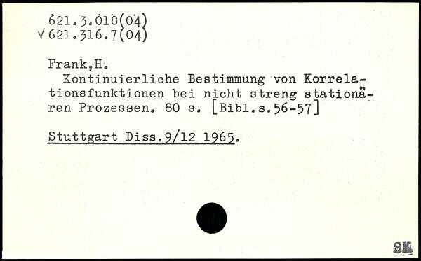 Kontinuierliche Bestimmung von Korrelationsfunktionen hei nicht streng stationären Prozessen.