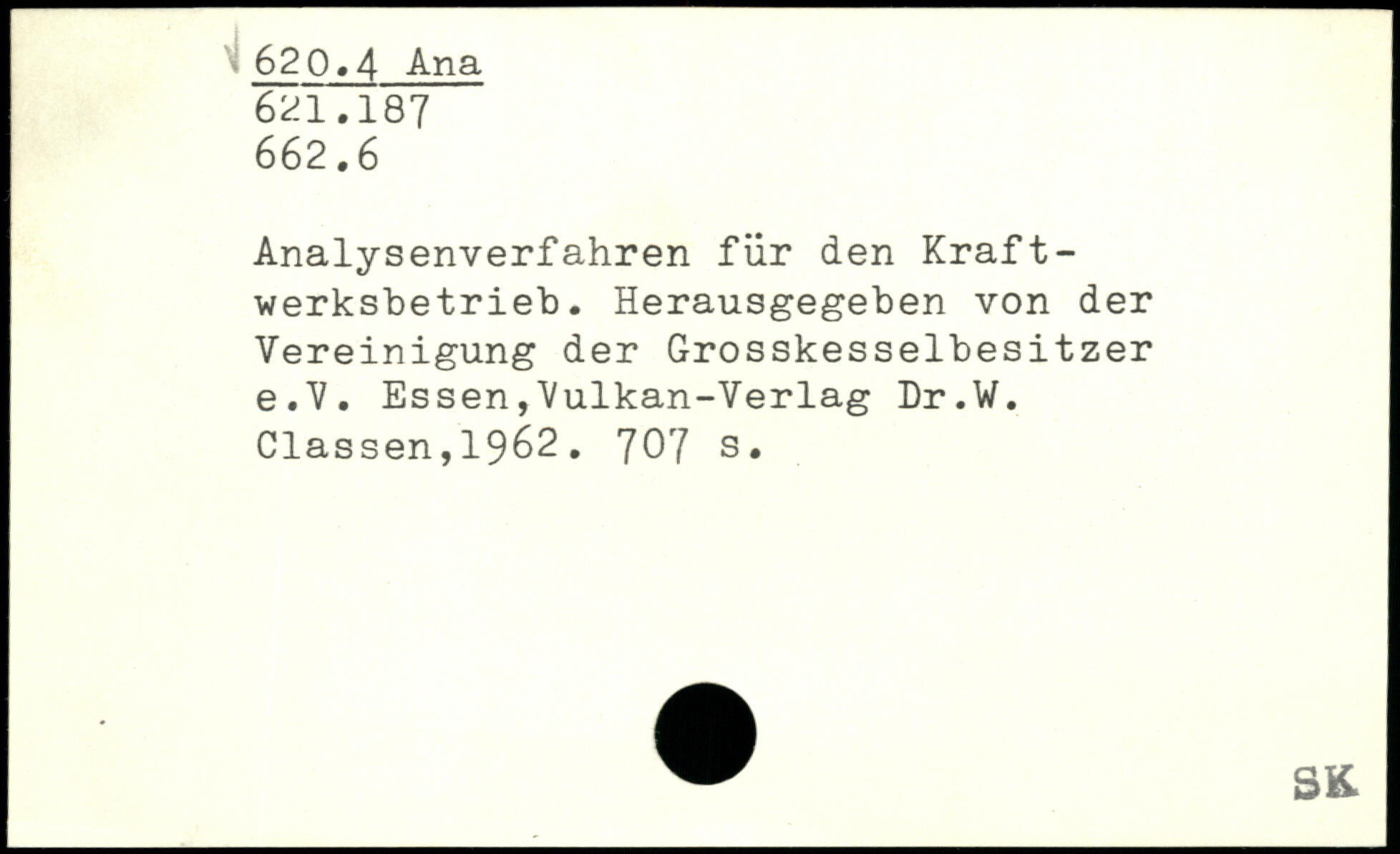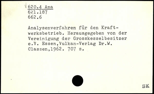 Analysenverfahren für den Kraft-werksbetrieh. Herausgegeben von der Vereinigung der Grosskesselbesitzer e.V. Essen,Vulkan-Verlag Dr.W. Classen, 1962. 'JO'J s.