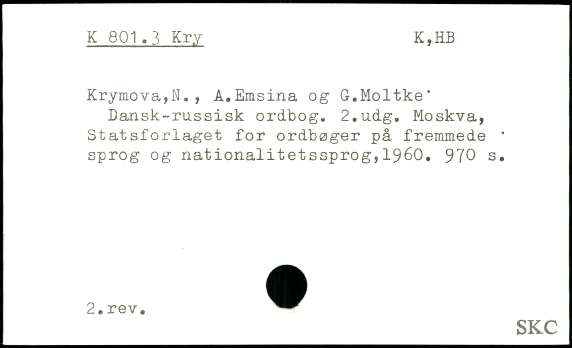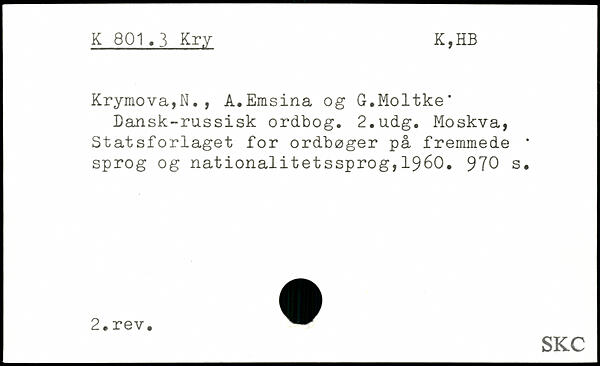 Dansk-russisk ordbog. 2,udg. Moskva, Statsforlaget for ordbøger på fremmede. sprog og nationalitetssprog,1960.