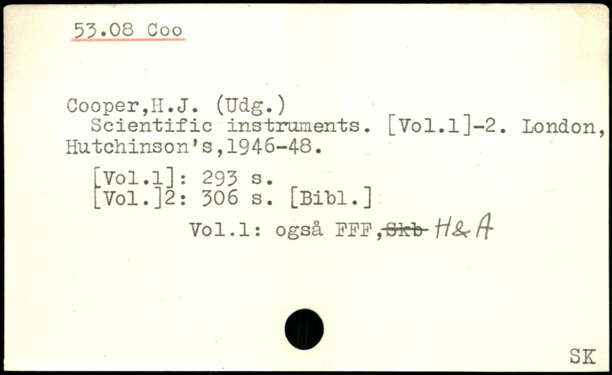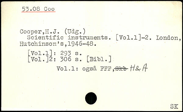 Cooper,II. J. (Udg.) Scientific instruments. [Vol.l]-2. London, Hutchinson1s,1946-48. fVol.l]: