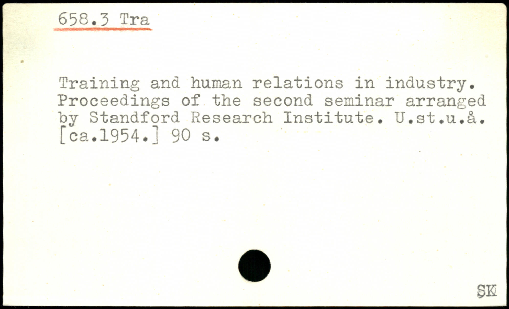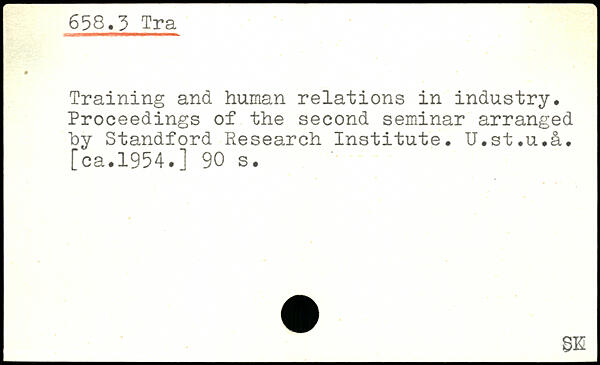 Training and human relations in industry. Proceedings of the second seminar arranged by Standford Research Institute. U.st.u.lu [ca.1954.]
