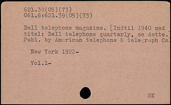 Bell telephone magazine, [indtil 194-0 med titel: Bell telephone quarterly, se dette._