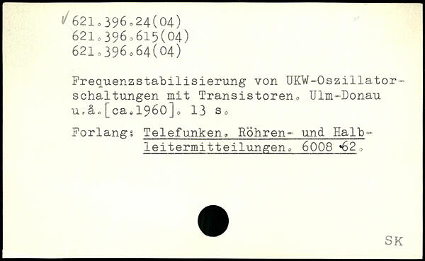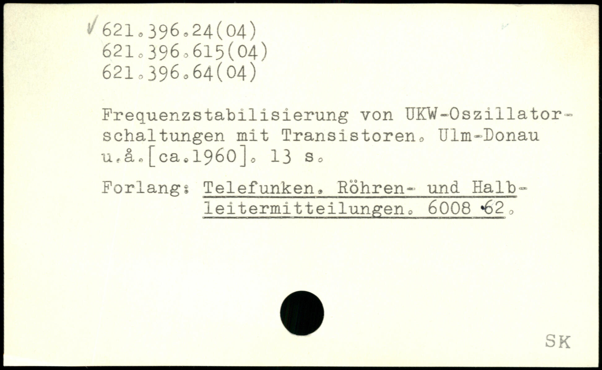 Frequenzstabilisierung von UKW-Oszillator-Schaltungen mit Transistoren, Ulm-Donau u,ä,[ca. 1960]0
